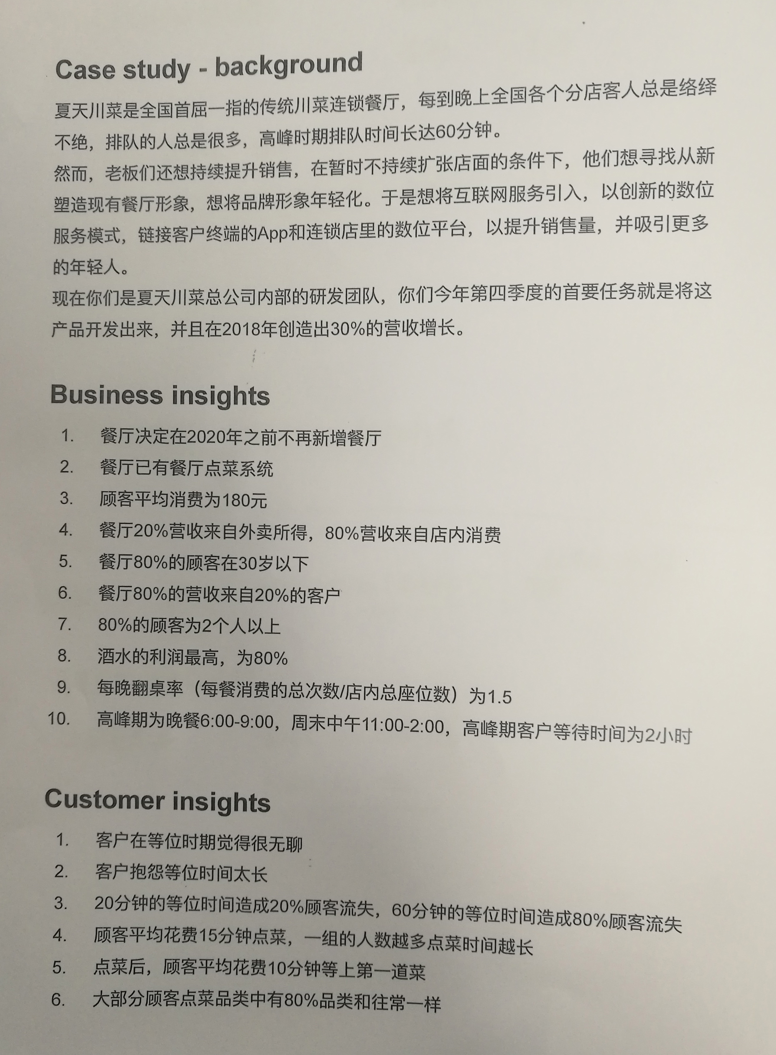 1第一步 老師發(fā)給我們一張紙,講了一個川菜館目前的情況,一些困難,想達到的目標(biāo)。讓我們先了解現(xiàn)狀和期望。