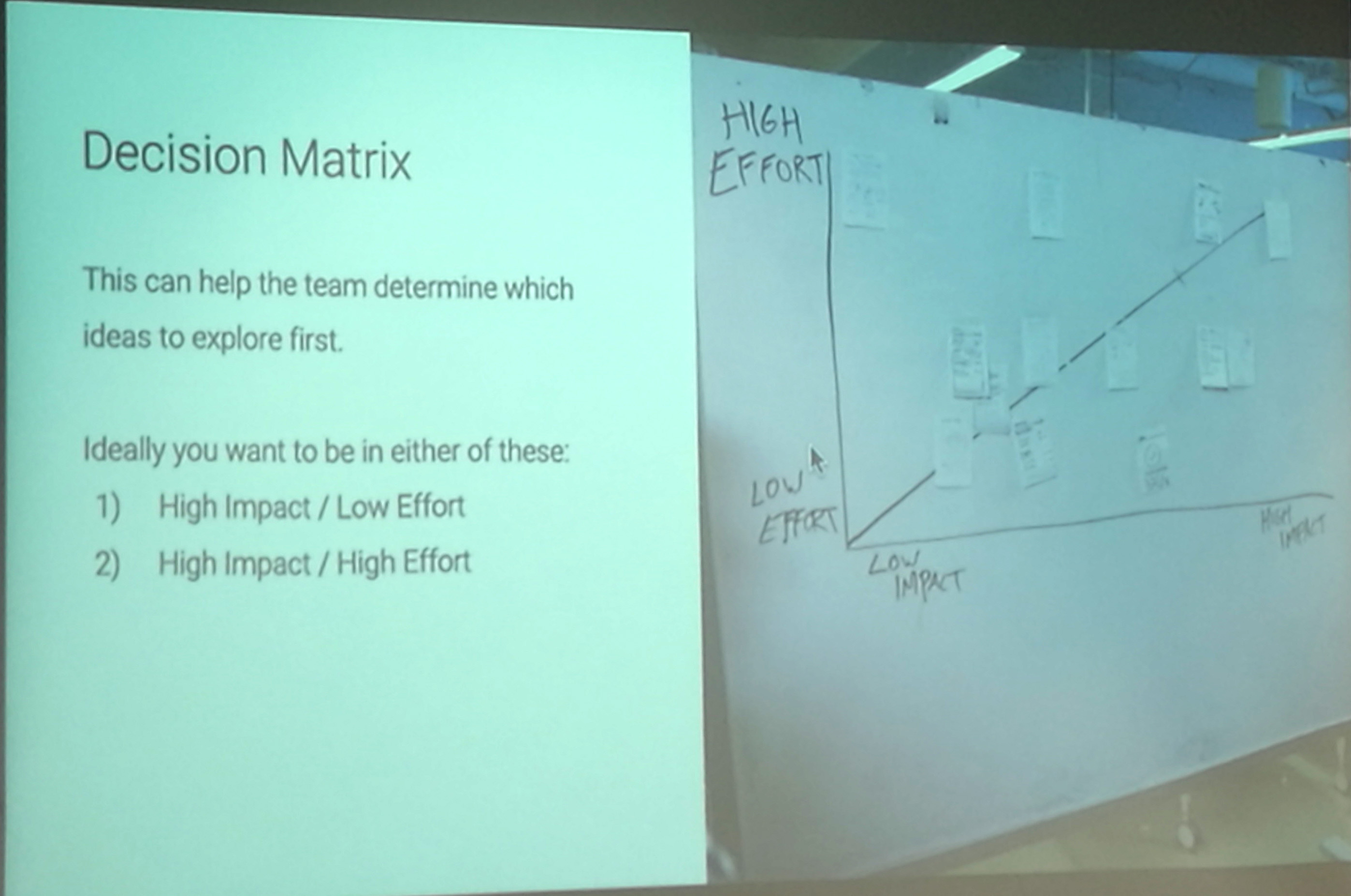 這個方法設(shè)計的很有邏輯性,針對一個難題先集合人找問題,不斷的提問題,然后從問題里面選出幾個最有價值的問題,然后再針對這個問題寫出自己的答案和方法,再選出最有價值的答案和方法,最后把它落實,畫出原型圖進行用戶測試,估計再加上視覺設(shè)計,視覺設(shè)計的提案和投票,這就是一個產(chǎn)品的整個設(shè)計過程。