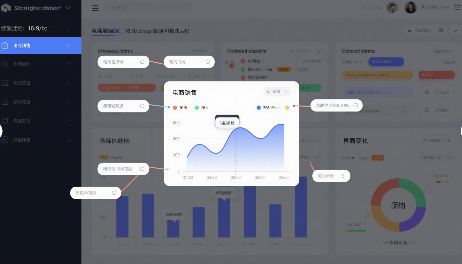 適度動效是數(shù)據(jù)的“動態(tài)說明書”。實時更新的數(shù)據(jù)流、閃爍的新數(shù)據(jù)點、平滑切換的圖表狀態(tài),能直觀展現(xiàn)數(shù)據(jù)變化趨勢。比如能源監(jiān)控大屏,電量流動的動態(tài)效果,模擬電力傳輸路徑;交互上,支持鉆取(點擊圖表深入查看細分?jǐn)?shù)據(jù))、篩選(按時間/區(qū)域等維度過濾),讓用戶從“看數(shù)據(jù)”升級為“探索數(shù)據(jù)”,挖掘隱藏在可視化背后的業(yè)務(wù)邏輯。