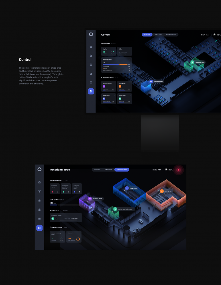 比如,將整個流程通過動效制作成模型展示出來,用戶便能直接清晰明了的找到某個環(huán)節(jié)的數(shù)據(jù);如今的數(shù)據(jù)可視化不再是一味的圖表堆砌,更多的設(shè)計師開始關(guān)注3D建模、動效交互等等,將更逼真的場景搬上大屏,給用戶身臨其境的真實感。