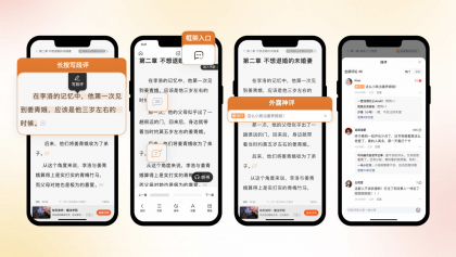 閱讀器場(chǎng)景是用戶使用時(shí)長(zhǎng)最長(zhǎng)的一個(gè)場(chǎng)景。因此我們?yōu)橛脩籼峁┝硕卧u(píng)功能,方便用戶閱讀過(guò)程中和書友進(jìn)行交流,為了不影響閱讀的流暢性,我們采用弱化的段評(píng)圖標(biāo)樣式和色彩,段評(píng)入口設(shè)計(jì)在段落尾部,減少對(duì)閱讀的干擾。