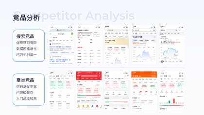 競(jìng)品分析:搜索競(jìng)品包括今日頭條、夸克、QQ瀏覽器、必應(yīng)、谷歌均以滿足用戶查找需求為主,信息以純文本形式展現(xiàn),消費(fèi)成本較高,且未滿足用戶潛在的開(kāi)戶需求,垂類(lèi)競(jìng)品開(kāi)戶頁(yè)對(duì)流程、材料介紹均不完整、缺少完整的介紹及問(wèn)題解答。