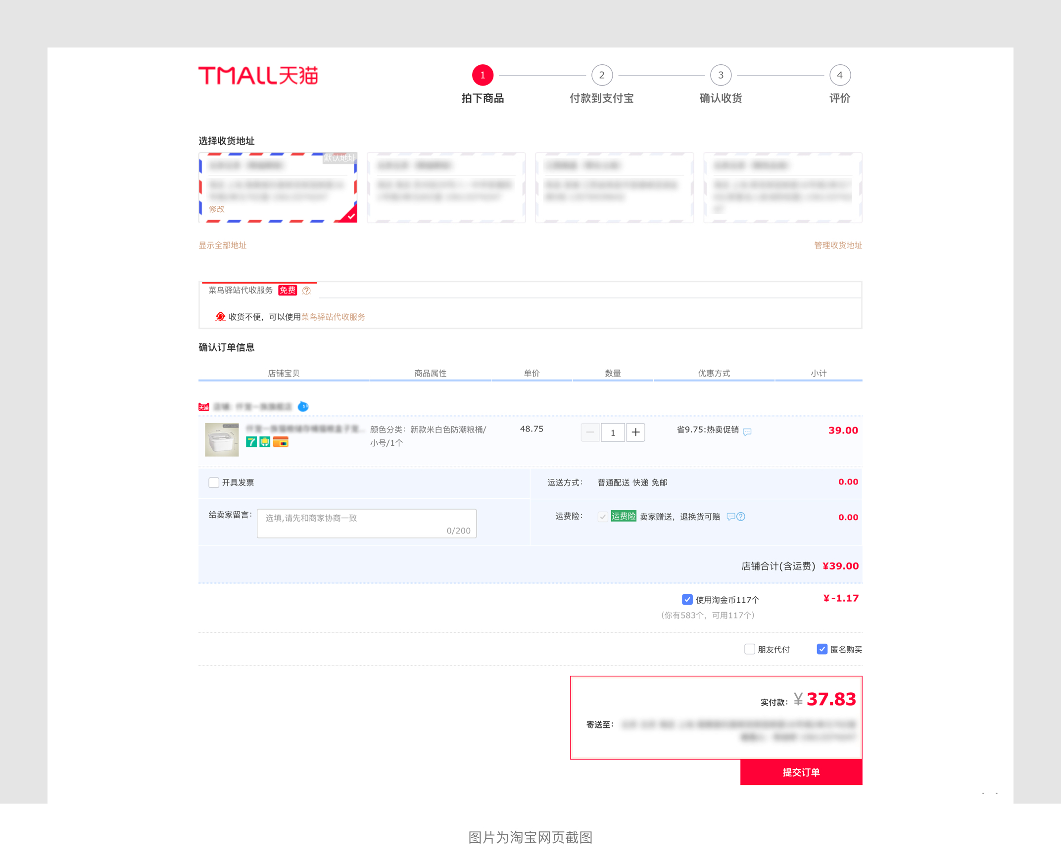 我們以淘寶來舉個典型的例子,淘寶屬于國民電商平臺也是亞洲較大的網上交易平臺,提供各類優(yōu)質商品。從平臺的特性來講,它以用戶下單并成交作為最終目標。其中支付表單起著一個關鍵的作用,用戶從購買到支付完成以分步形式進行,第一步填寫基本信息并提交訂單,第二步選擇商品并選擇支付貨款至第三方,第三步買方確認收貨并自動打款給商家,第四步完成訂單并評價。在填寫表單時中間沒任何阻斷,用戶能很順利的按步驟完成訂單。淘寶支付表單屬于比較典型的分步表單。