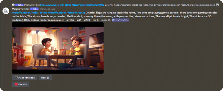 在前期,我們對構想的畫面進行關鍵詞的描述:“可愛帥氣的男女孩子們一起玩手機,開心地微笑著,舉起手歡呼,溫暖的房間,大型落地窗。”將關鍵詞翻譯后放入Midjourney中進行煉圖,最終篩選了幾張氛圍還不錯的進行下一步操作。