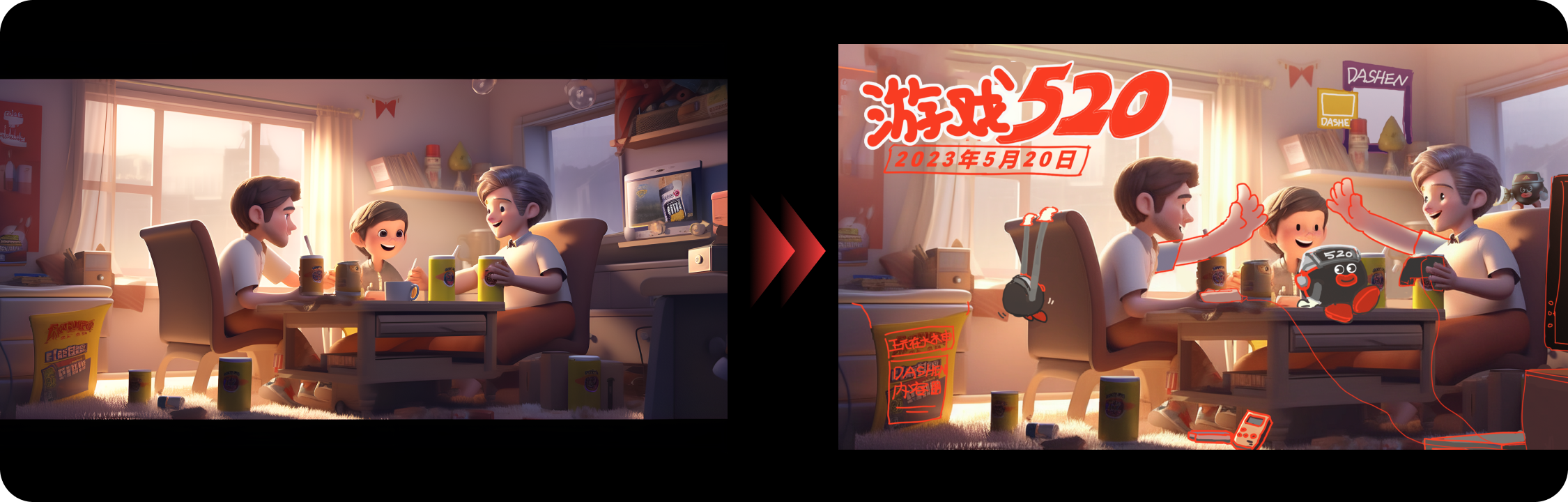 在此基礎上,我們進一步優(yōu)化畫面,將畫面中一些不合理的元素運用上述同樣的方式替換掉,并把文案擺放至畫面中看看整體的效果。如下圖所示: