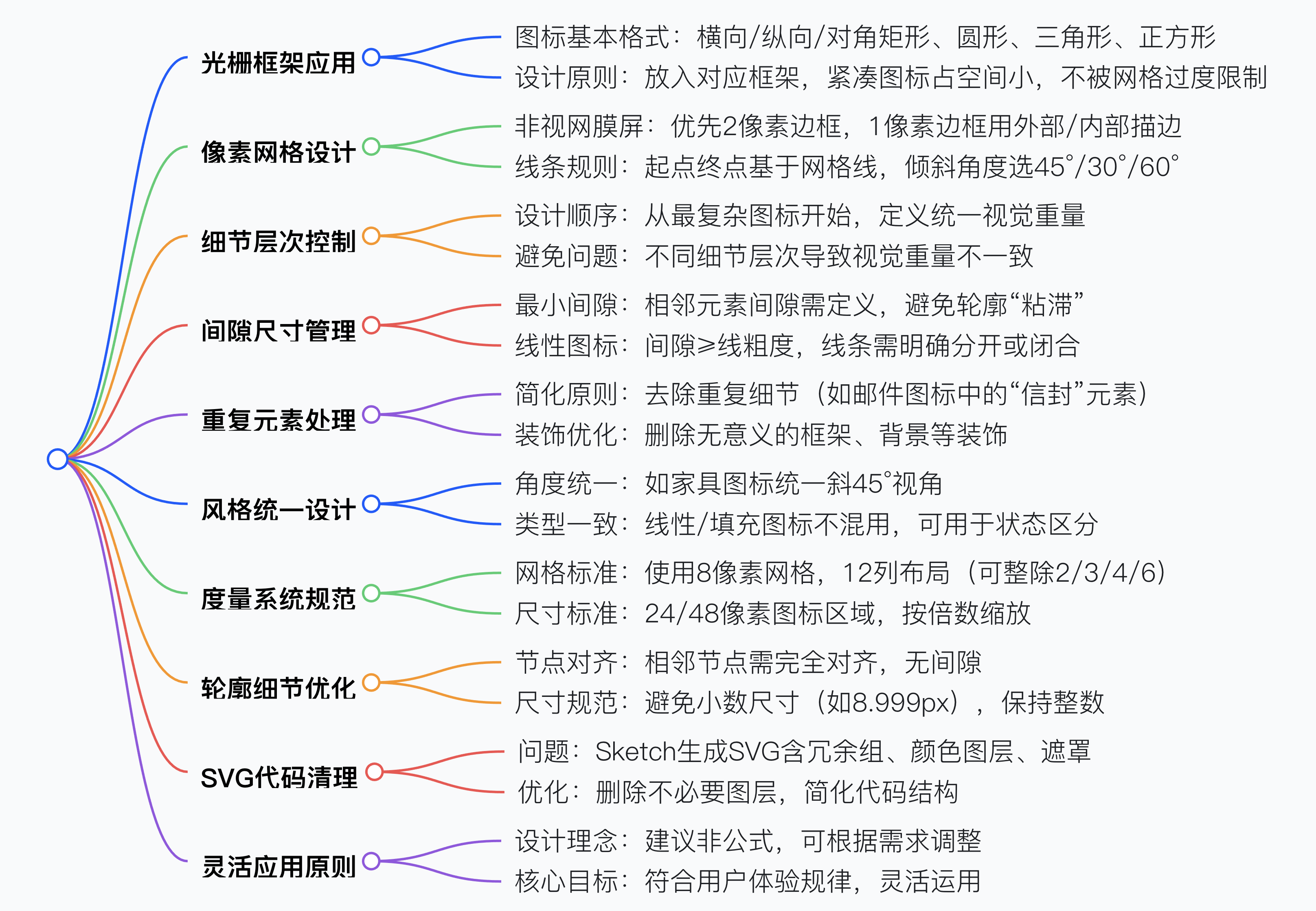UI 界面圖標設(shè)計的 10 個關(guān)鍵細節(jié):使用光柵框架確保圖標視覺重量一致,設(shè)計時注意像素網(wǎng)格重要性、優(yōu)先 2 像素邊框,從最復(fù)雜圖標開始設(shè)計以保持細節(jié)層次統(tǒng)一,控制相鄰元素最小間隙、避免輪廓 “粘滯”,去除重復(fù)圖形元素以簡化設(shè)計,保持圖標風(fēng)格(如角度、線性 / 填充)一致,基于 8 像素網(wǎng)格等二倍數(shù)度量系統(tǒng)設(shè)計,確保輪廓節(jié)點對齊、尺寸為整數(shù),清理 SVG 代碼中的冗余圖層,同時強調(diào)這些建議需靈活應(yīng)用而非刻板遵循。