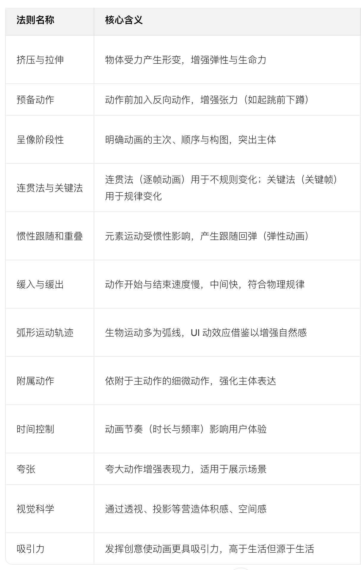 基于迪士尼 “動(dòng)畫十二基本法則”,結(jié)合 UI 場(chǎng)景的具體實(shí)踐如下: