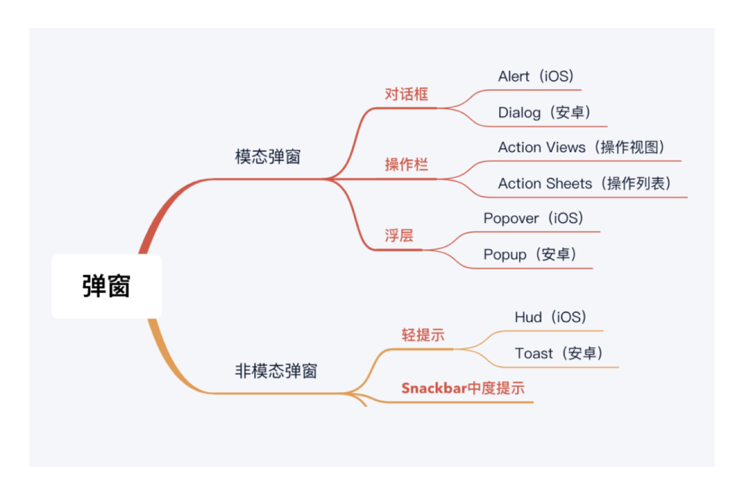 • 常見類型:對(duì)話框(Dialog/Alert)、底部動(dòng)作欄(Actionbar)、浮層(Popover/Popup)。