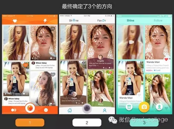 最后如上圖,根據評審我們選出了票數最高的三個不同風格的方案,理論上我們認為這三個方案都是正確的、內部達成一致、且都符合我們在『情感關鍵詞』 和『情緒板』分析時『陽光溫暖年輕』的設計目標。但是三個是不同風格各有千秋,而且我們都挺喜歡的,要怎么抉擇呢?最后就要試探一下用戶的感覺了。