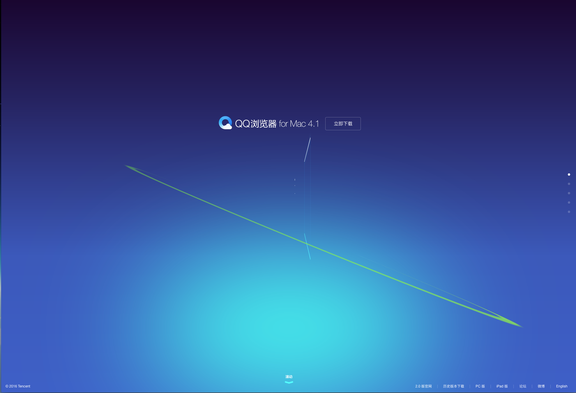 9 qq瀏覽器網(wǎng)站 http://browser.qq.com/mac/ 很炫的立體動(dòng)效 整屏切換html5 這是一個(gè)讓人眼前一亮的網(wǎng)站,因?yàn)閯?dòng)效創(chuàng)造了驚喜。