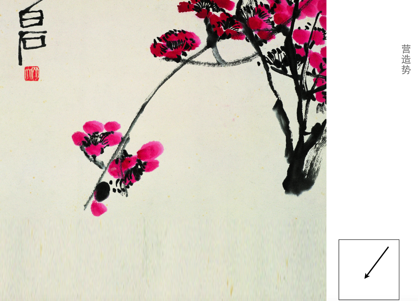 當(dāng)文字小而成行,視覺上就形成了“線”,而圖標(biāo)為“點(diǎn)”,人們的閱讀習(xí)慣使成行的文字具有向右擴(kuò)張的趨勢(shì),這種趨勢(shì)同國(guó)畫的“勢(shì)”一樣的道理。
