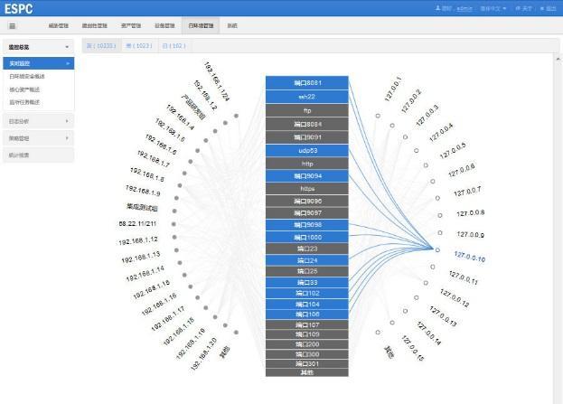優(yōu)化圖形時,我們對很多細節(jié)進行了調(diào)整: – 考慮太密或太疏時用戶的感受,只展示了TOP N。 – 弧度、配色的優(yōu)化,與我們UI界面風格相一致。 – IP名稱超長時省略處理。 – 微觀視角中,源和目的分別以藍色和紫色區(qū)分,同時在線上增加箭頭,箭頭向內(nèi)為源,向外是目的,方便用戶理解。 – 交互上,通過單擊鉆取到單個端口和IP的信息;鼠標滑過時相關(guān)信息高亮展示,這樣既能讓畫面更加炫酷,又能讓人方便地識別。