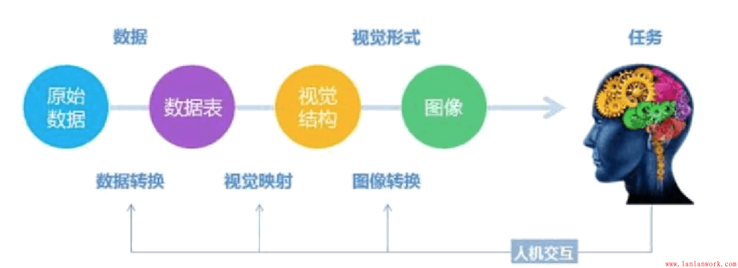 有了故事,還需要找到數(shù)據(jù),并且具有對數(shù)據(jù)進行處理的能力,圖1是一個可視化參考模型,它反映的是一系列的數(shù)據(jù)的轉(zhuǎn)換過程: