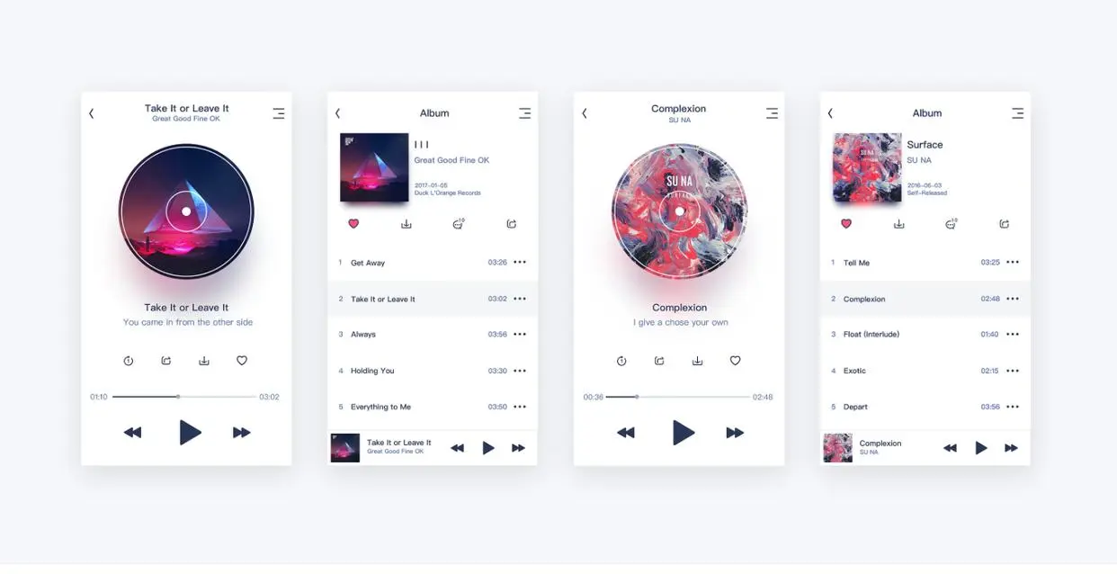 相比較網(wǎng)格式列表與垂直式列表,前者大多是用于展示文字信息,界面會顯得比較干凈有效。后者則更具情感魅力,會讓界面更加富有感染力。